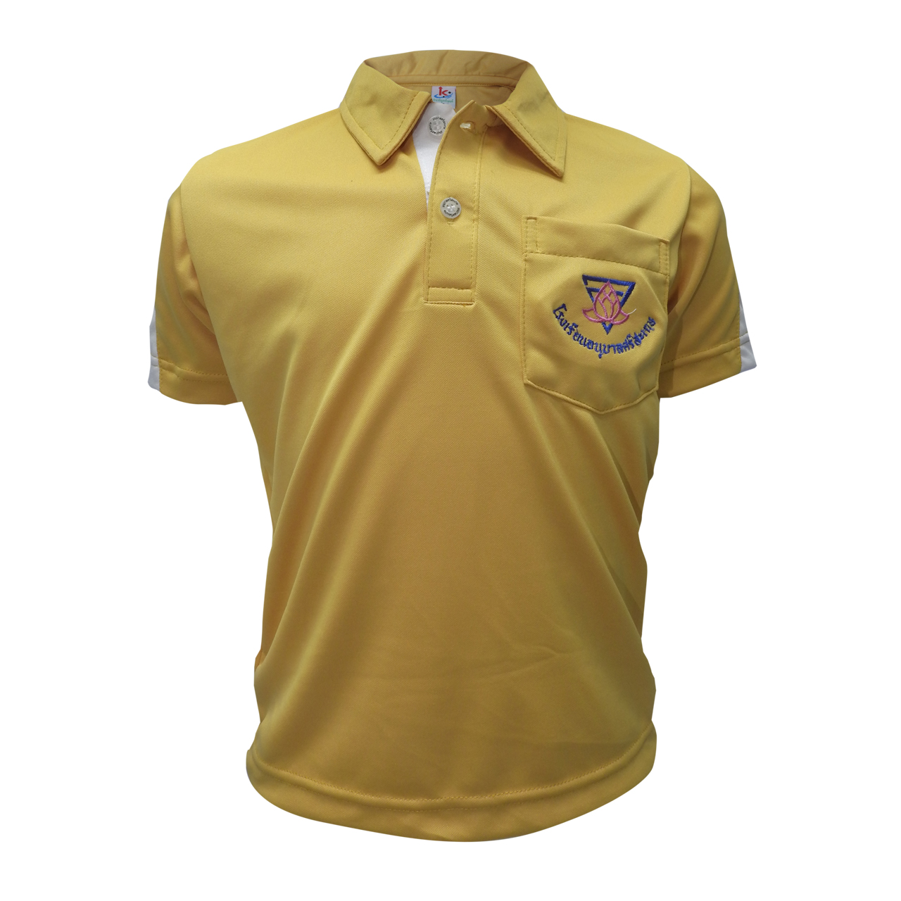 เสื้อกีฬาโปโล แถบขาว สีทอง(อนุบาล-ป.3) (อนุบาลศรีสะเกษ)